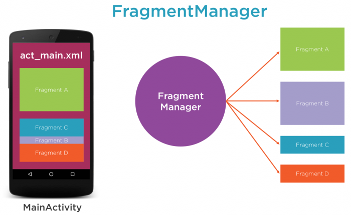 We use a Fragment manager to manager the fragments transaction which are methods which add, remove or replace fragments for an activity.