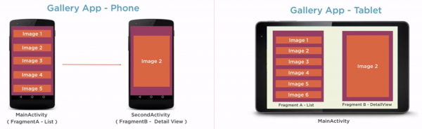 Introduced in API 11. They are a small piece of UI and must have an Activity. Fragments can be added or removed from the Activity. They allow you to capture the UI functionality where you may need to share it across different activities. If we look at phone vs tablet we might this it more appropriate to use to activities but the UI code will remain the same.