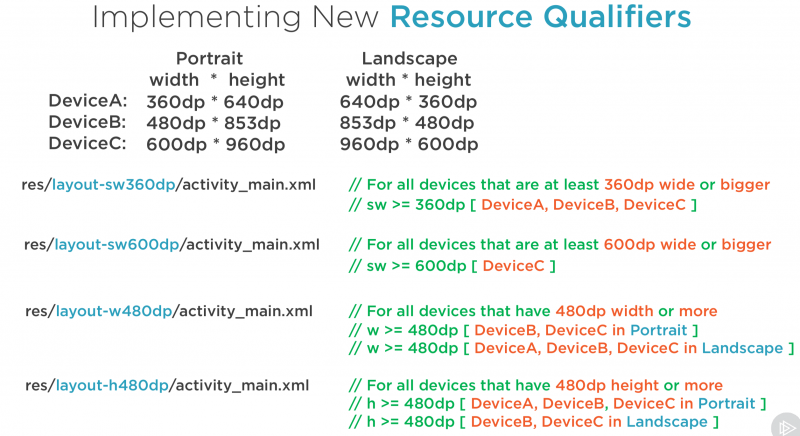 - res/layout-w600dp/my_layout.xml For Multi-pane (any screen > 600dp width)