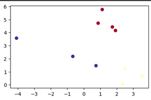 (10, 2) [[ 1.12031365 5.75806083] [ 1.7373078 4.42546234] [ 2.36833522 0.04356792] [ 0.87305123 4.71438583] [-0.66246781 2.17571724] [ 0.74285061 1.46351659] [-4.07989383 3.57150086] [ 3.54934659 0.6925054 ] [ 2.49913075 1.23133799] [ 1.9263585 4.15243012]] [0 0 1 0 2 2 2 1 1 0]
