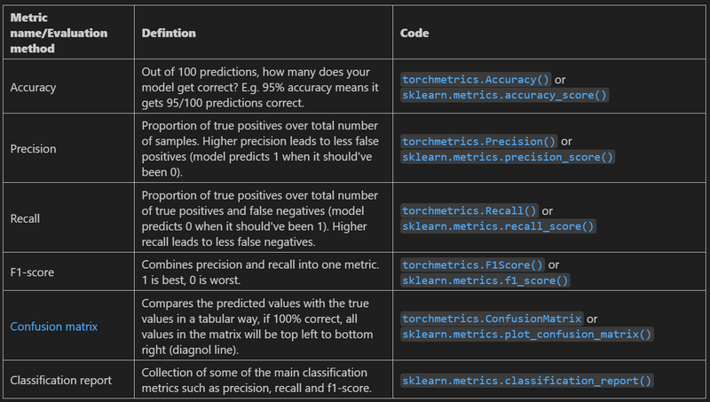 Again a really useful slide for Daniel Bourke. He has been a joy to watch and with a 24 hours course that is saying something.