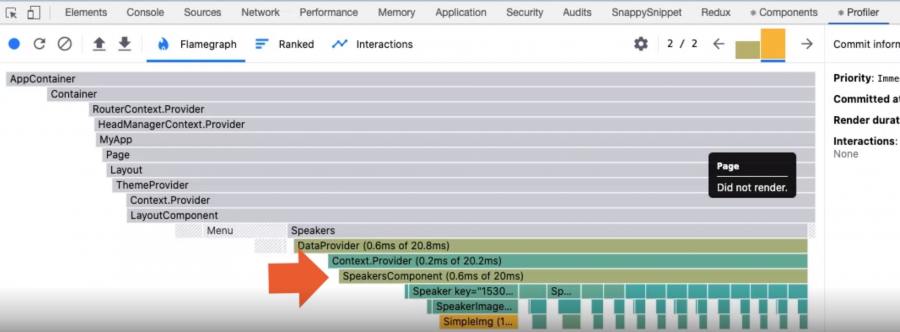 What was interesting was when we toggled the button for favoured speaker the Flamegraph showed that the SpeakerImage was rendered 13 times (one for each speaker). So understanding what should be rendered is probably the important thing to know.