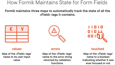 Contains methods for updating the value, touched or error status for the field. This can be done but using the