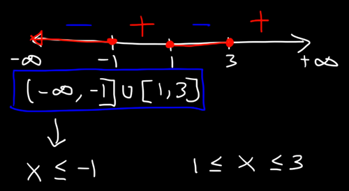 x³ - x <= 3x² -3 x³ - 3x² - x + 3 <= 0 x²(x-3) -1(x-3) <= 0 (x-3)(x² -1) <= 0 (x-3)(x+1)(x-1) <= 0
