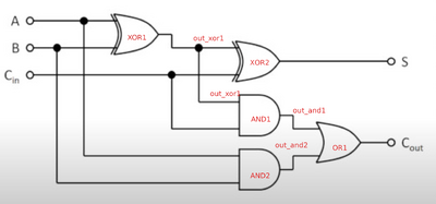 Cₒᵤₜ = C (A̅ ⊕ B̅) + AB S = C ⊕ A ⊕ B