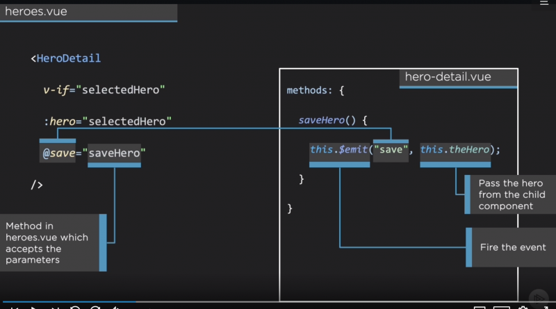 In details page we need to get the hero from state. We do this we need to map the getters from the store and use it to get the hero. Note the use of lodash cloneDeep as we do not want to modify the state directly