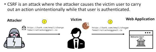 Definition: A malicious site tricks a user's browser into sending authenticated requests to your server.